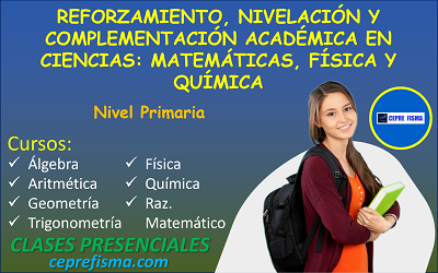 REFORZAMIENTO, NIVELACION Y COMPLEMENTACION ACADEMICA EN CIENCIAS: MATEMATICAS, FISICA Y QUIMICA. MODALIDAD DE CLASE PERSONALIZADA PRESENCIAL. NIVEL DE EDUCACION PRIMARIA